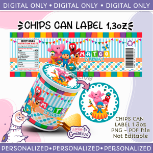 Pocoyo Chips Can 1.3oz Pringles Snack Labels & Wrap, Chip Can Label, Personalized, not editable
