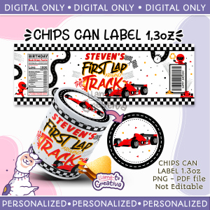 Red Racing Car Chips Can 1.3oz Pringles Snack Labels & Wrap, Chip Can Label, Personalized, not editable