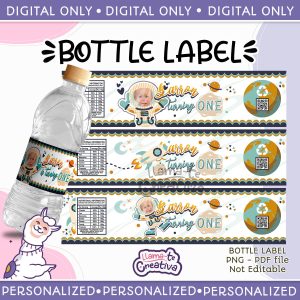 Outer Space, Astronaut bottle label, Digital printable, Personalized w photo, Not editable