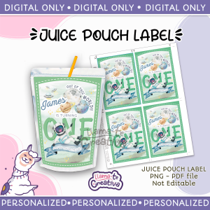 Outer Space, Astronaut juice pouch bag label, Capri sun, Personalized w photo, not editable