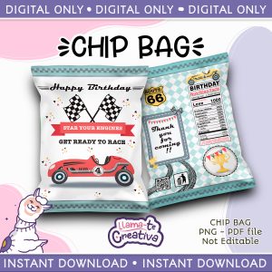 Racing Car Chip Bag, Instant Download, not editable