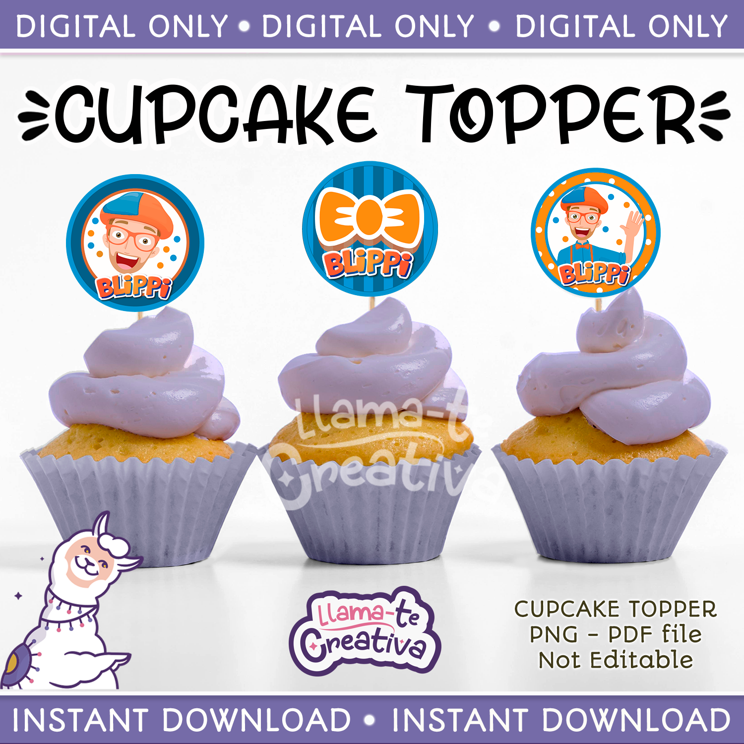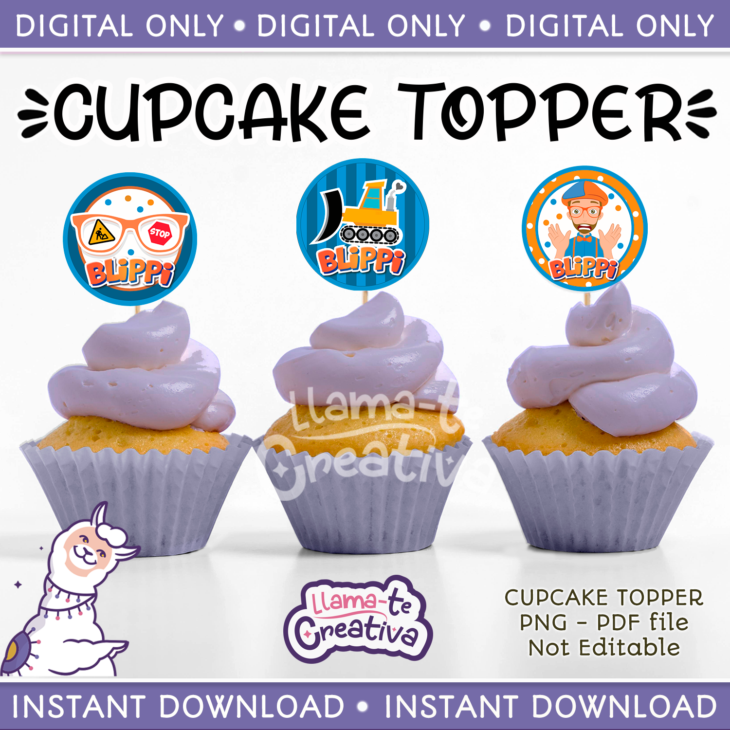 Blippi Cupcake Toppers, Instant Download, not editable