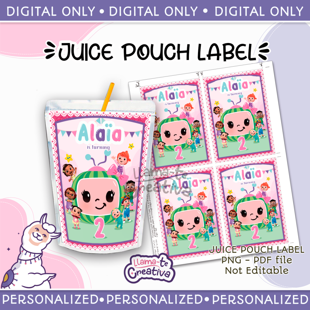 Cocomelon juice pouch bag label, Capri sun, Instant Download, not editable