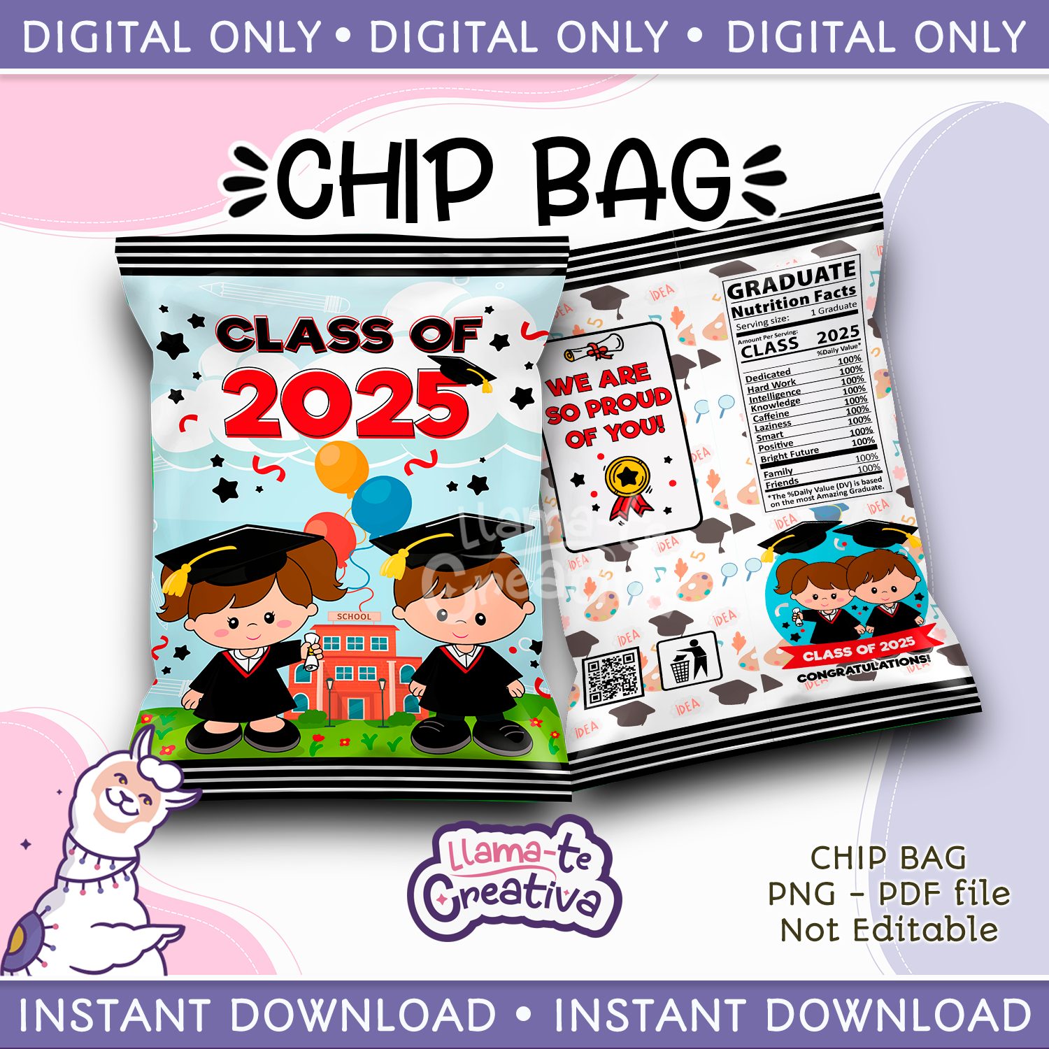 Graduation Chip Bag, Class of 2025, Instant Download, not editable