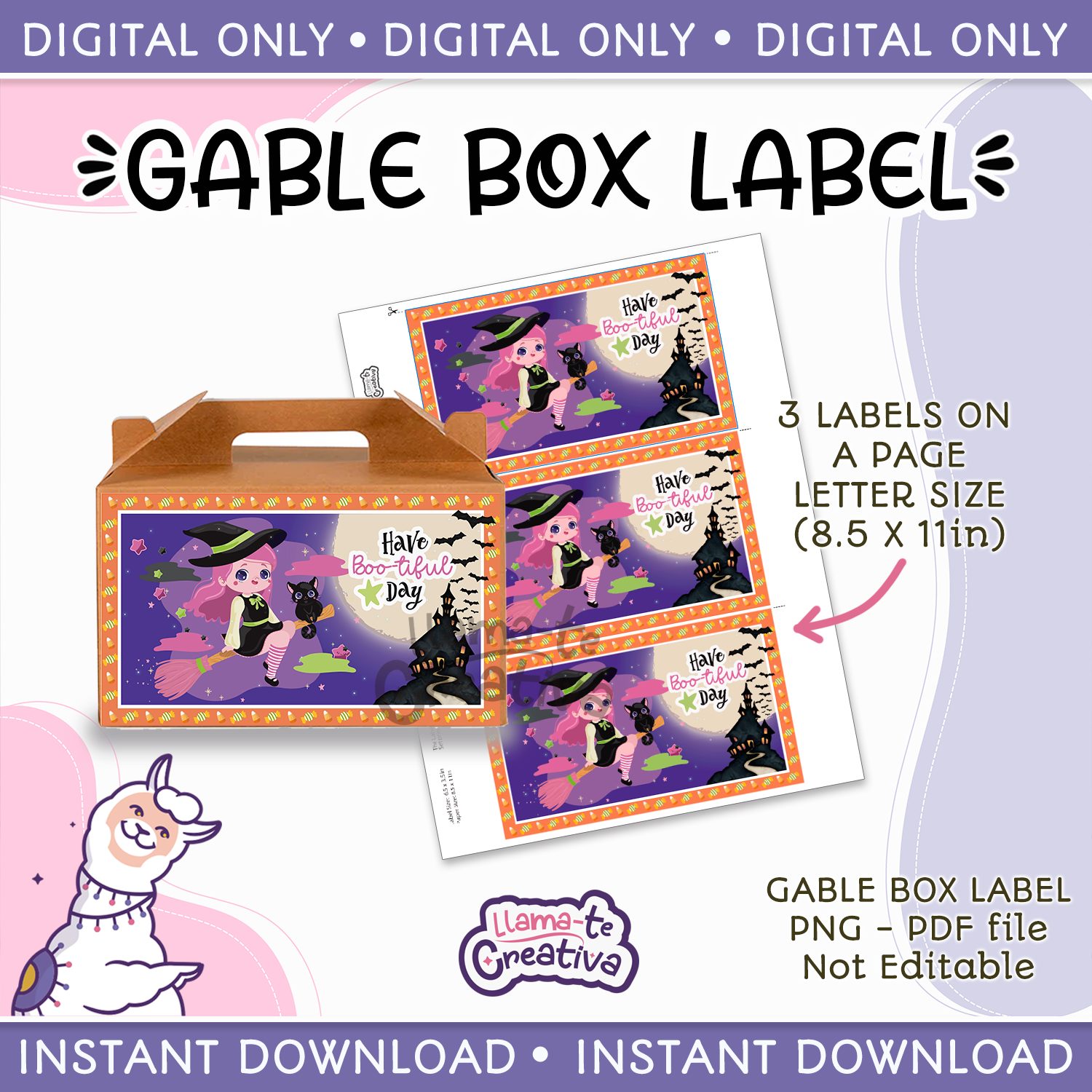 Halloween Gable Box Label, witch, not editable