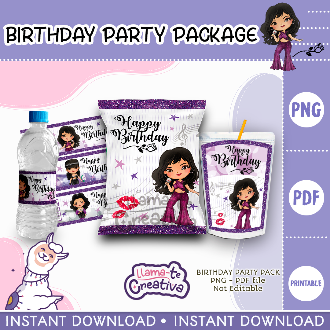 Selena Quintanilla Party Pack, Chip Bag, Bottle label and juice pouch bag label, instant download, not editable