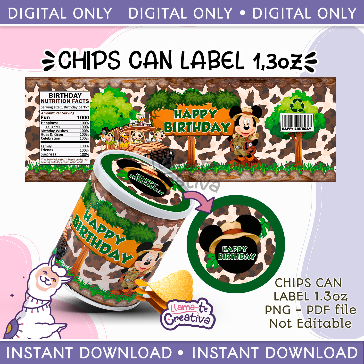 Mickey Safari Chips Can 1.3oz Pringles Snack Labels & Wrap, Chip Can Label, Instant download, not editable