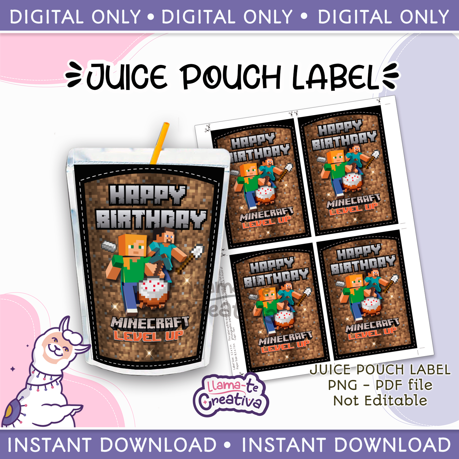 Minecraft juice pouch bag label, Capri sun, Instant Download, not editable