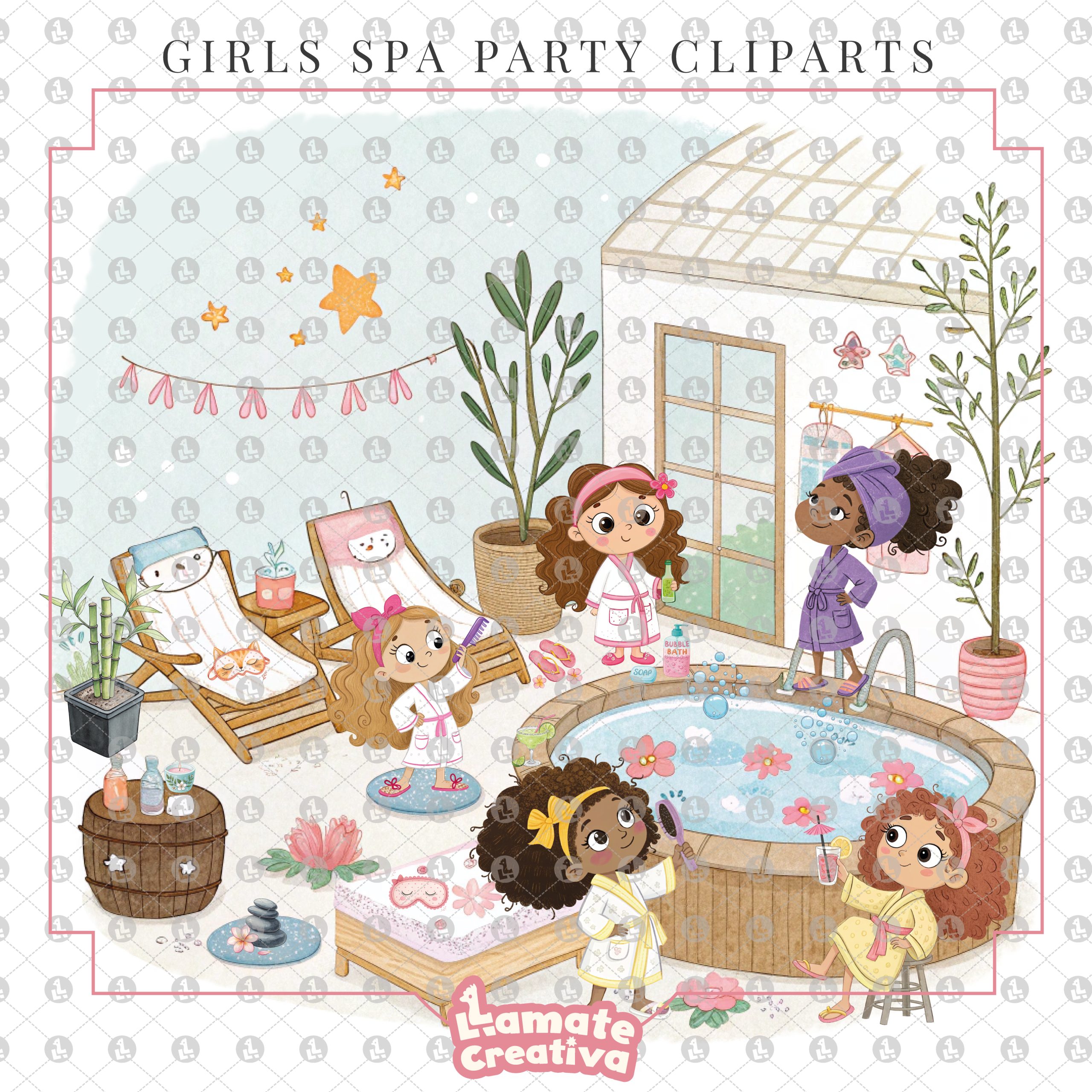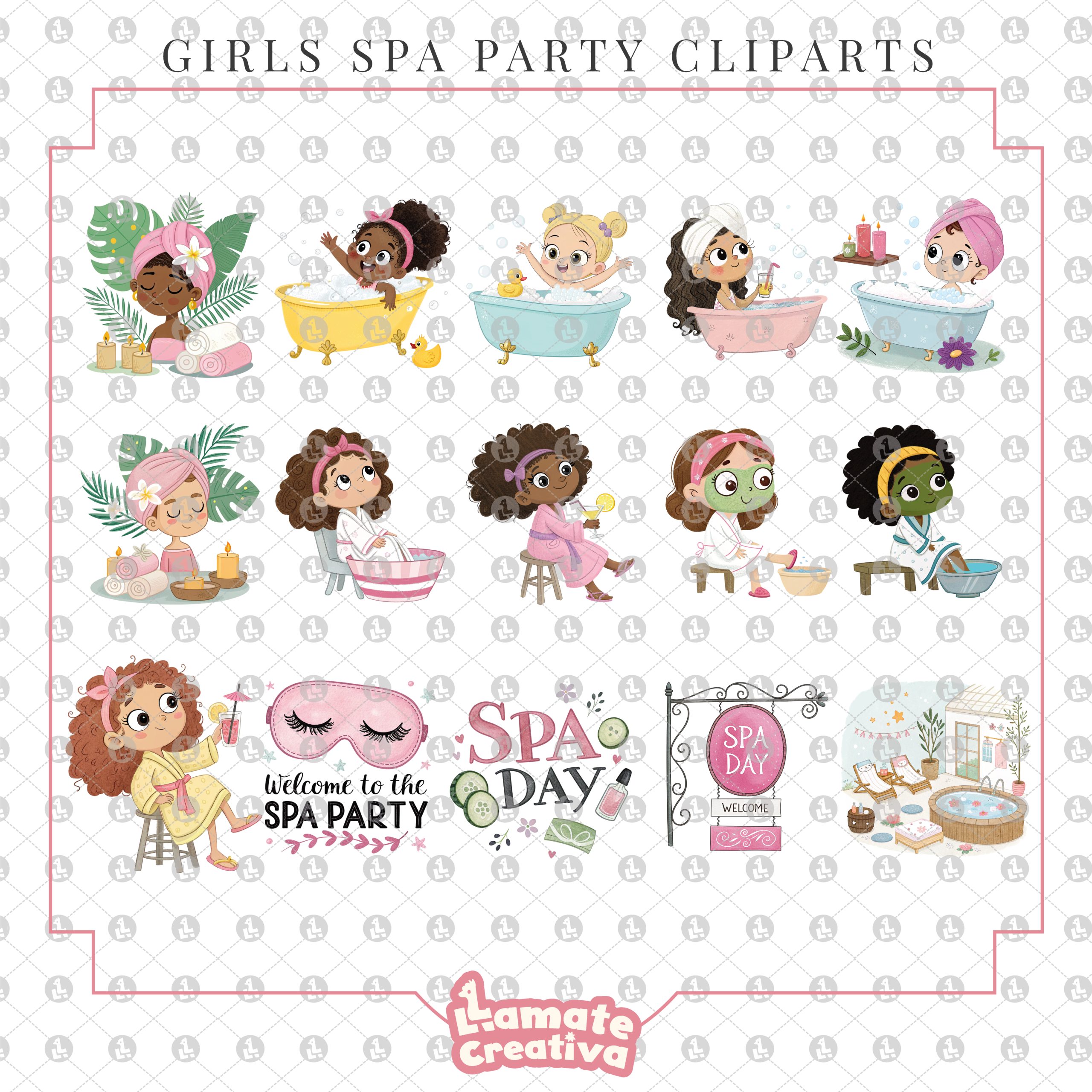 Spa Party Clipart, Girl Spa Party, Bath & Spa, Spa Girls, Girl Spa party, Instant download