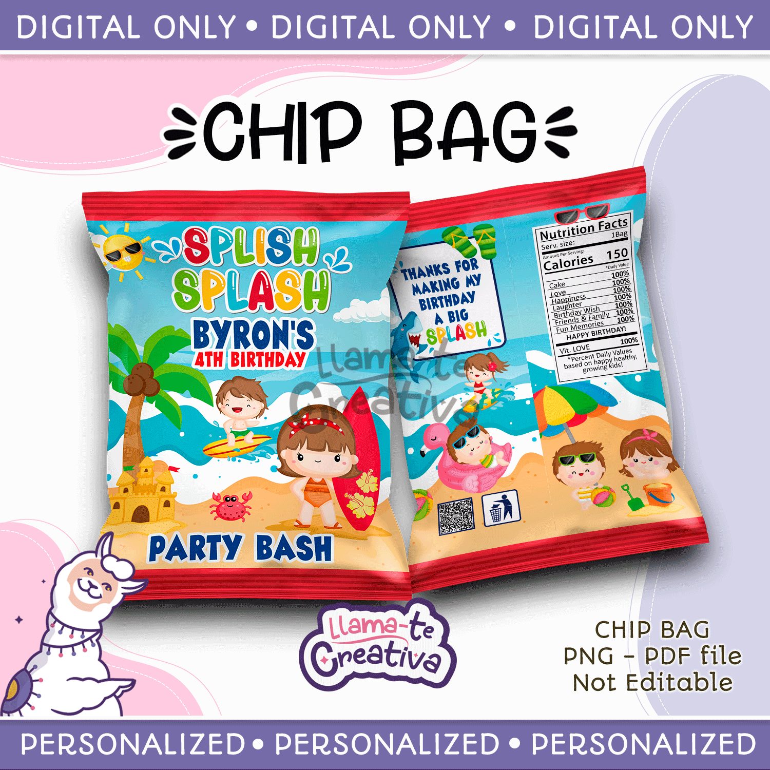 Splish Splash Chip Bag, Personalized, Not editable