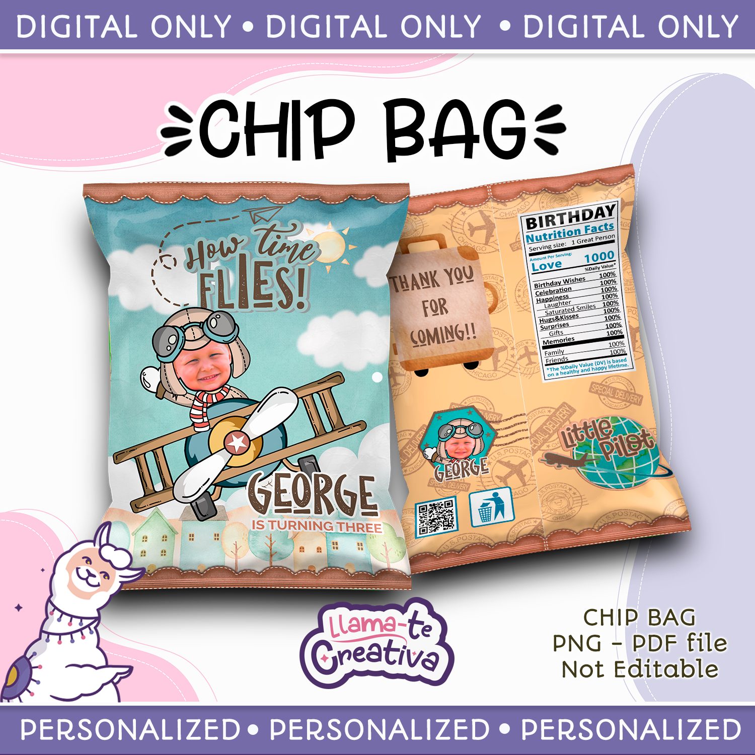 Travel Chip Bag, Aviator, Personalized w photo, not editable