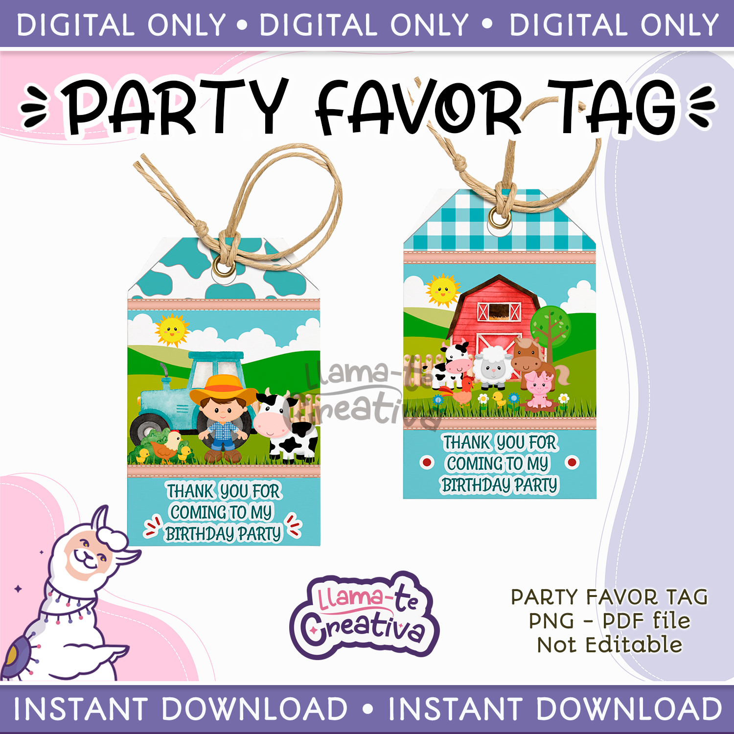 Two Farm Boy Birthday Party Favor Tags, Instant Download, not editable